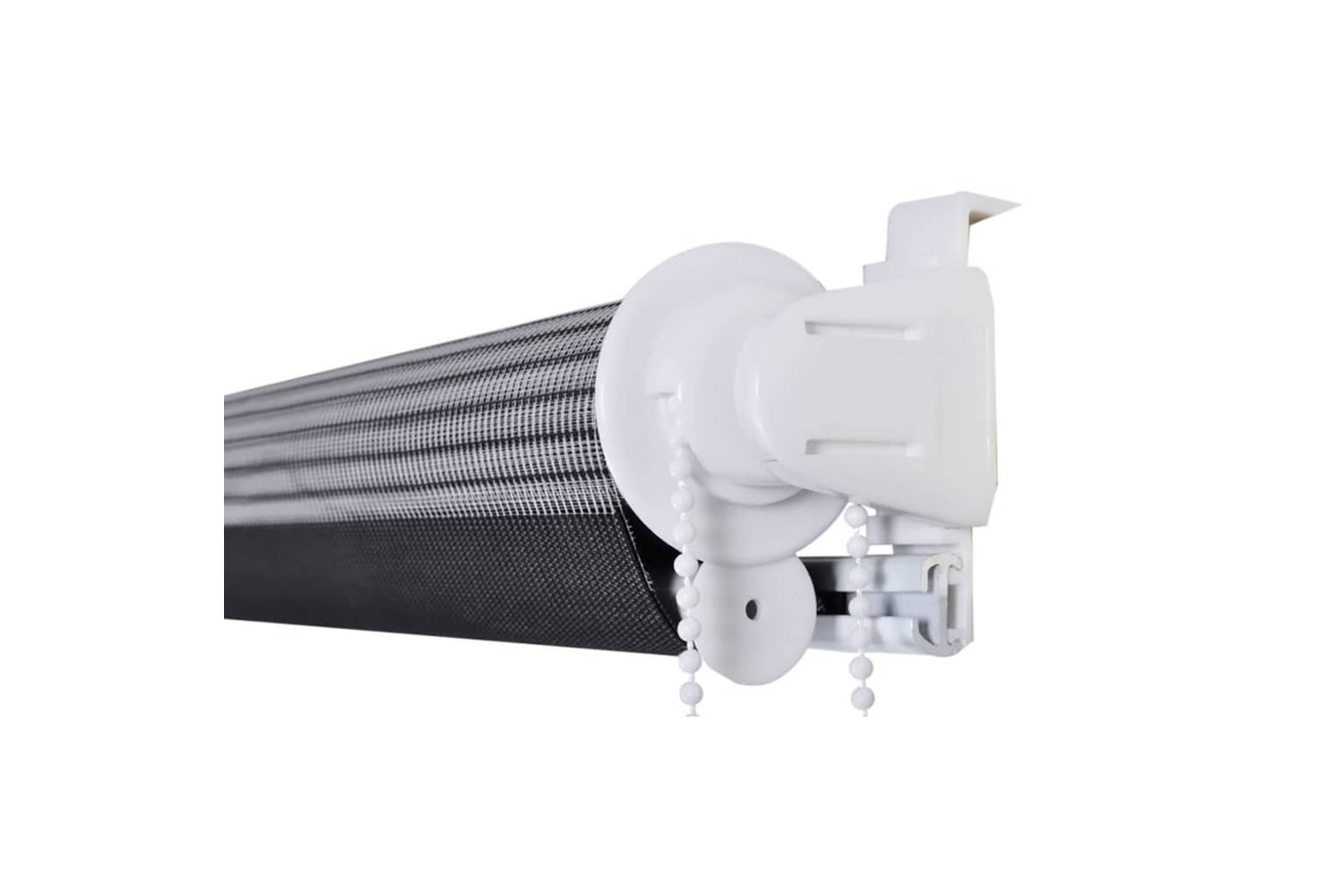 Delivery includes 1 x 50 cm top aluminum rail with 47 x 100 cm zebra print fabric, 1 x 50 cm top rail, 1 x 50 cm heavy bottom rail, 2 x pothook, 2 x bracket, 1 x chain holder, 2 x gasket and 1 x ball chain.