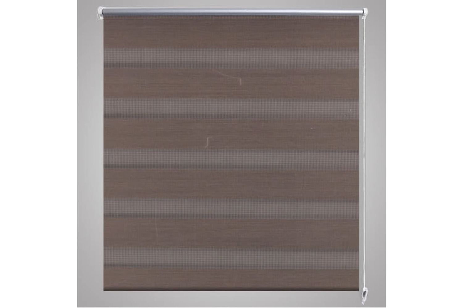 The blind has two alternating parallels of opaque and transparent fabric. By simply adjusting the position of the blind, one can choose to align the back and front opaque and transparent layers in such a way to create a unique light filtering effect suitable for any contemporary living space.