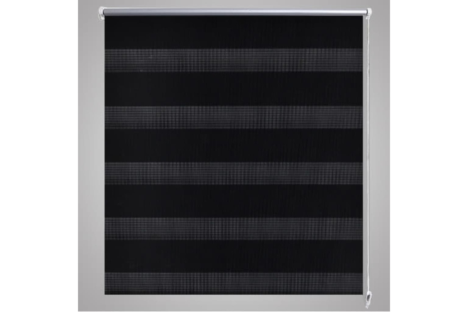 Delivery includes 1 x 100 cm top aluminum rail with 97 x 175 cm zebra print fabric, 1 x 100 cm top rail, 1 x 100 cm heavy bottom rail, 2 x pothook, 2 x bracket, 1 x chain holder, 2 x gasket and 1 x ball chain.