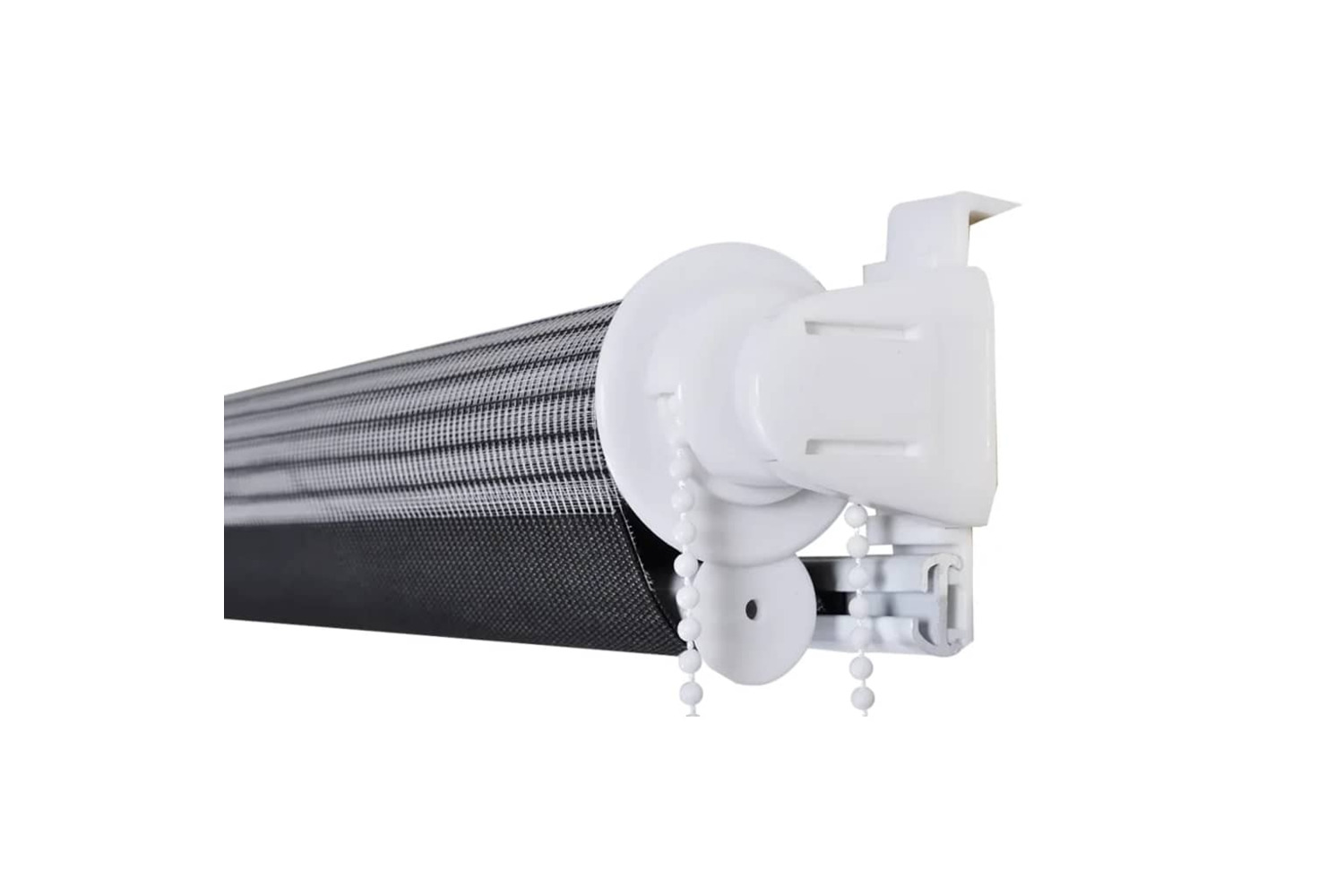 Delivery includes 1 x 120 cm top aluminum rail with 117 x 175 cm zebra print fabric, 1 x 120 cm top rail, 1 x 120 cm heavy bottom rail, 2 x pothook, 2 x bracket, 1 x chain holder, 2 x gasket and 1 x ball chain.