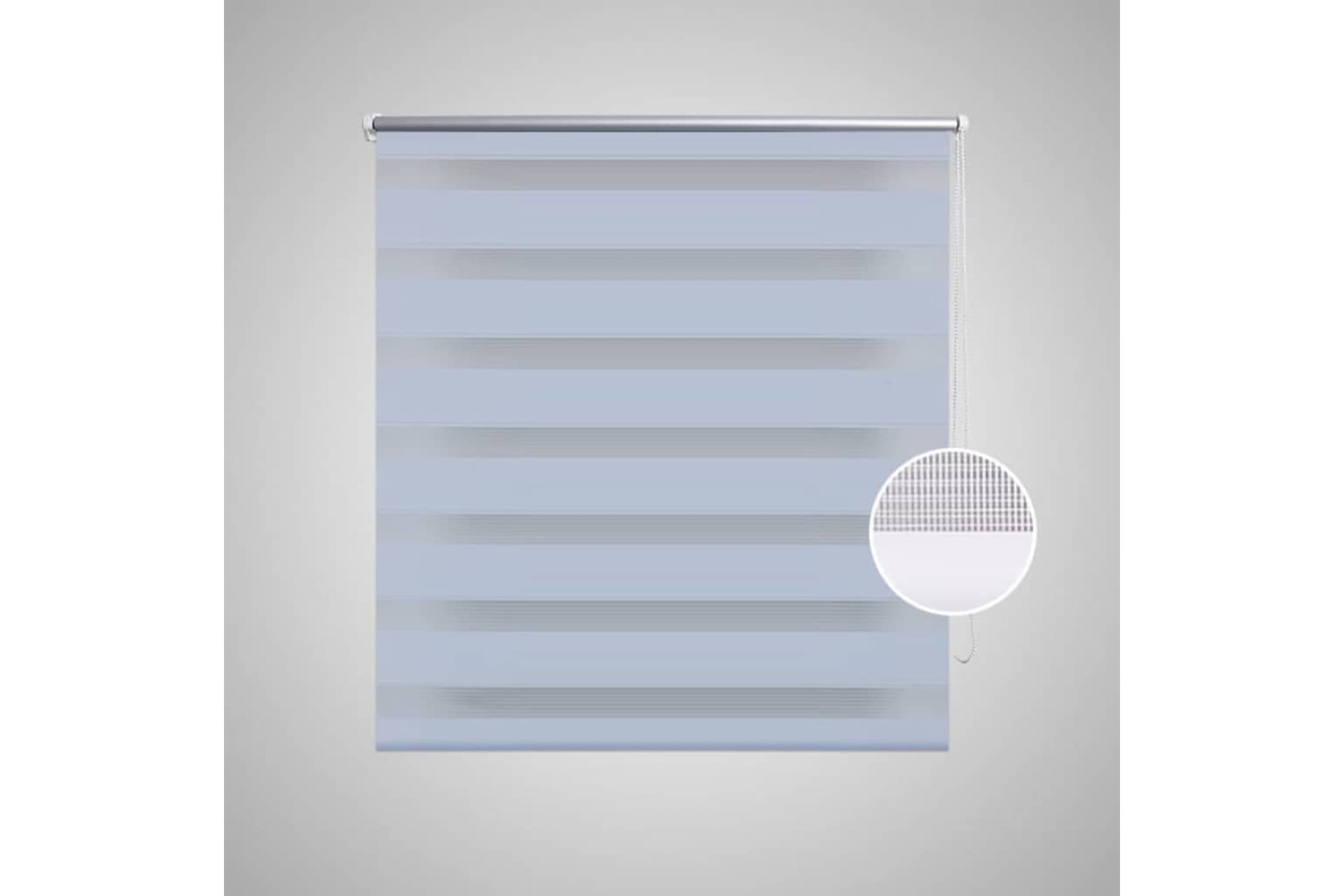 Delivery includes 1 x 120 cm top aluminum rail with 117 x 230 cm zebra print fabric, 1 x 120 cm top rail, 1 x 120 cm heavy bottom rail, 2 x pothook, 2 x bracket, 1 x chain holder, 2 x gasket and 1 x ball chain.