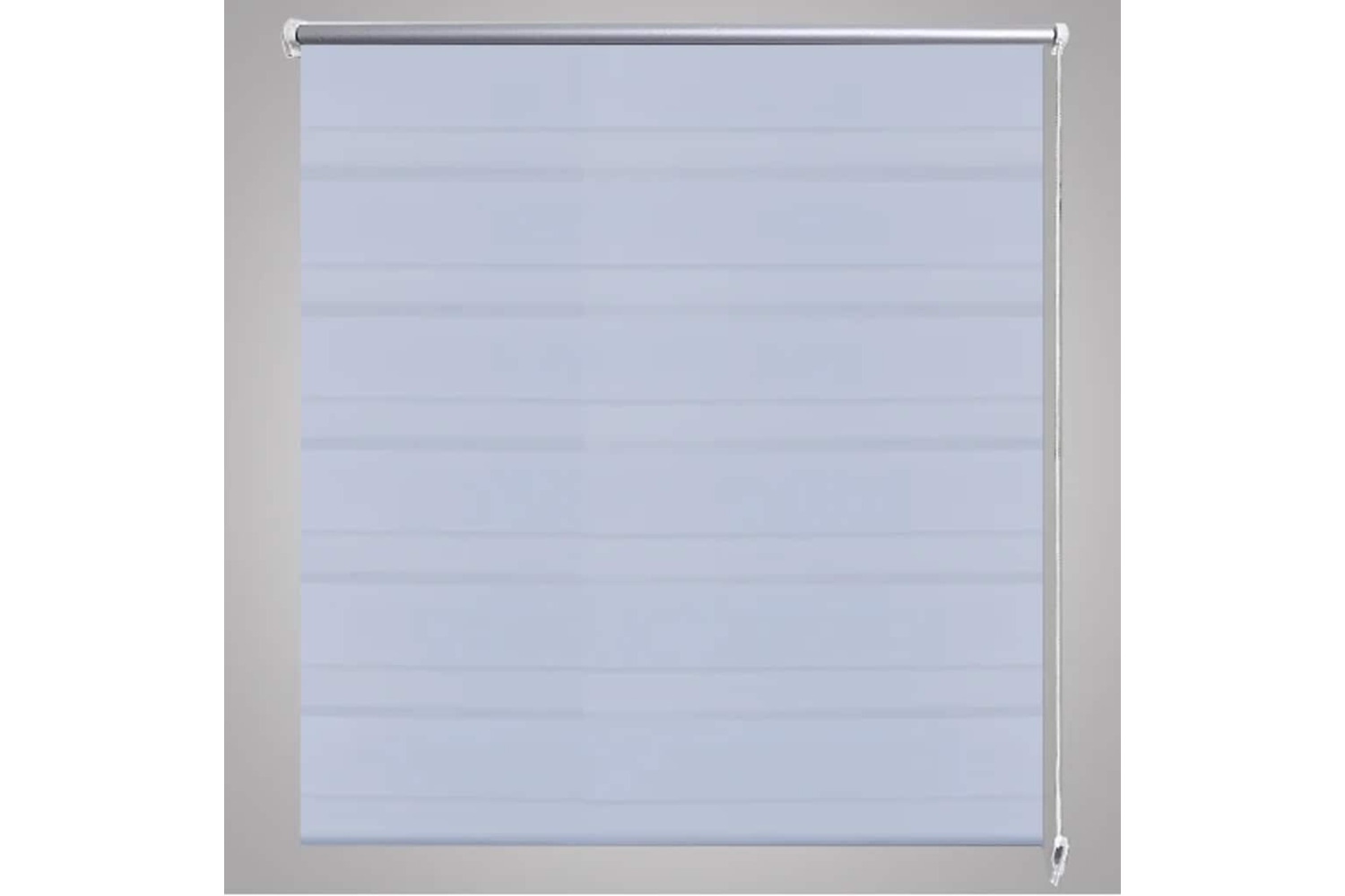 The blind has two alternating parallels of opaque and transparent fabric. By simply adjusting the position of the blind, one can choose to align the back and front opaque and transparent layers in such a way to create a unique light filtering effect suitable for any contemporary living space.
