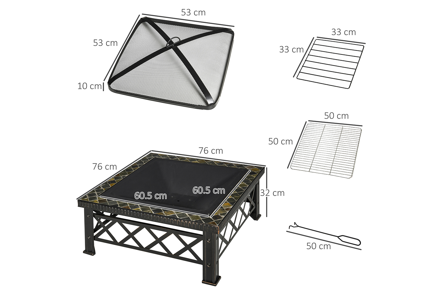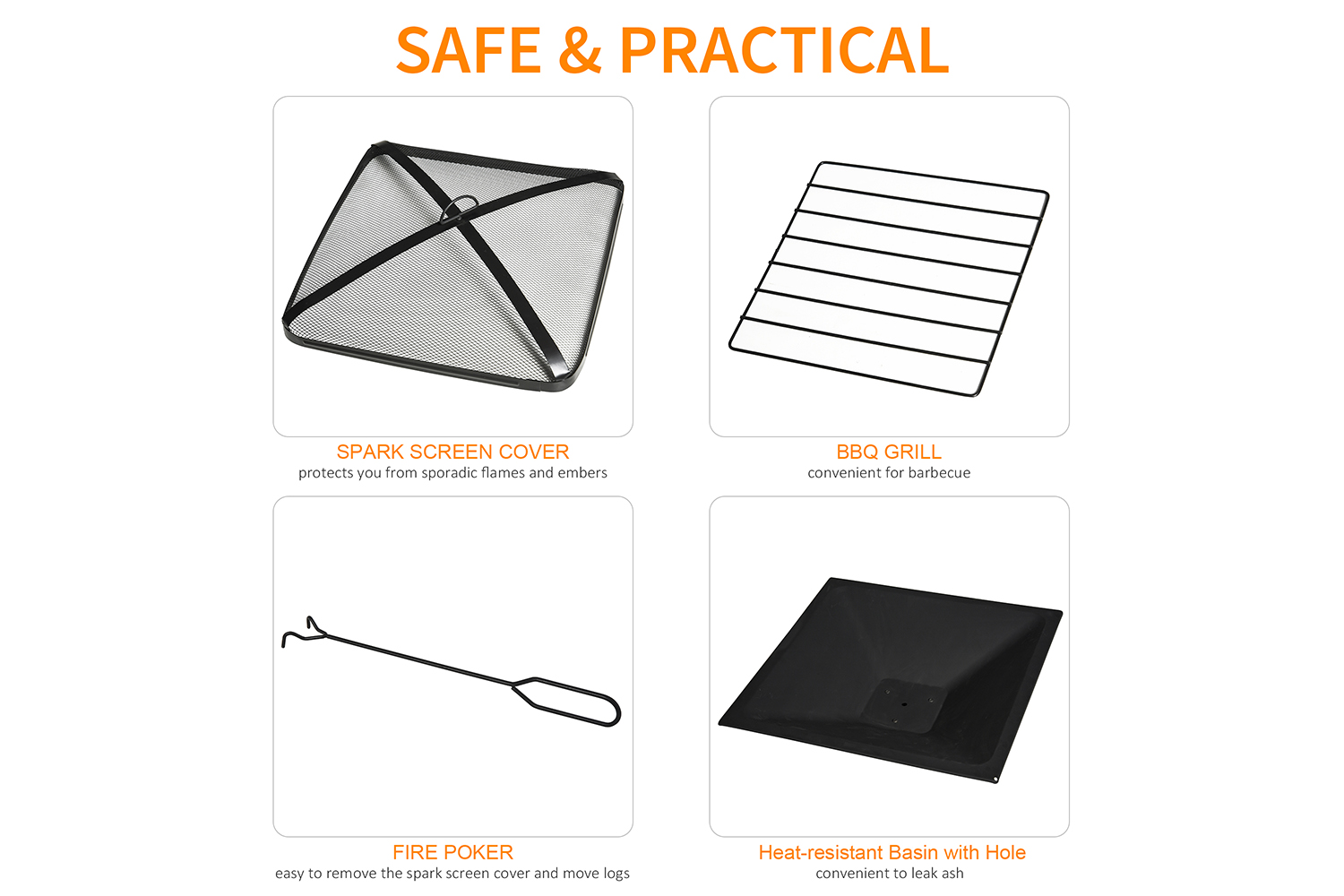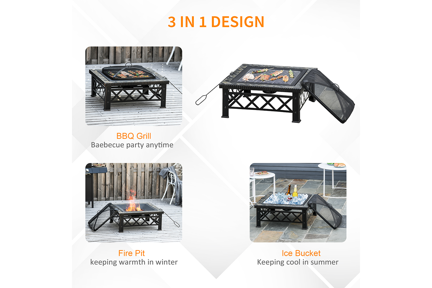 Whether you want to enjoy barbeque cuisine bedside the fire or have an evening interesting, this square fire pit from Outsunny is a perfect choice and you can enjoy a safe and controlled campfire. With an attractive faux slate edged design, this fire pit can provide plenty of room for you and your friends to gather around, chat and stay warm. Stylish and practical, This fire pit is a must have as a reliable way to enjoy a real outdoor wood burning fire.