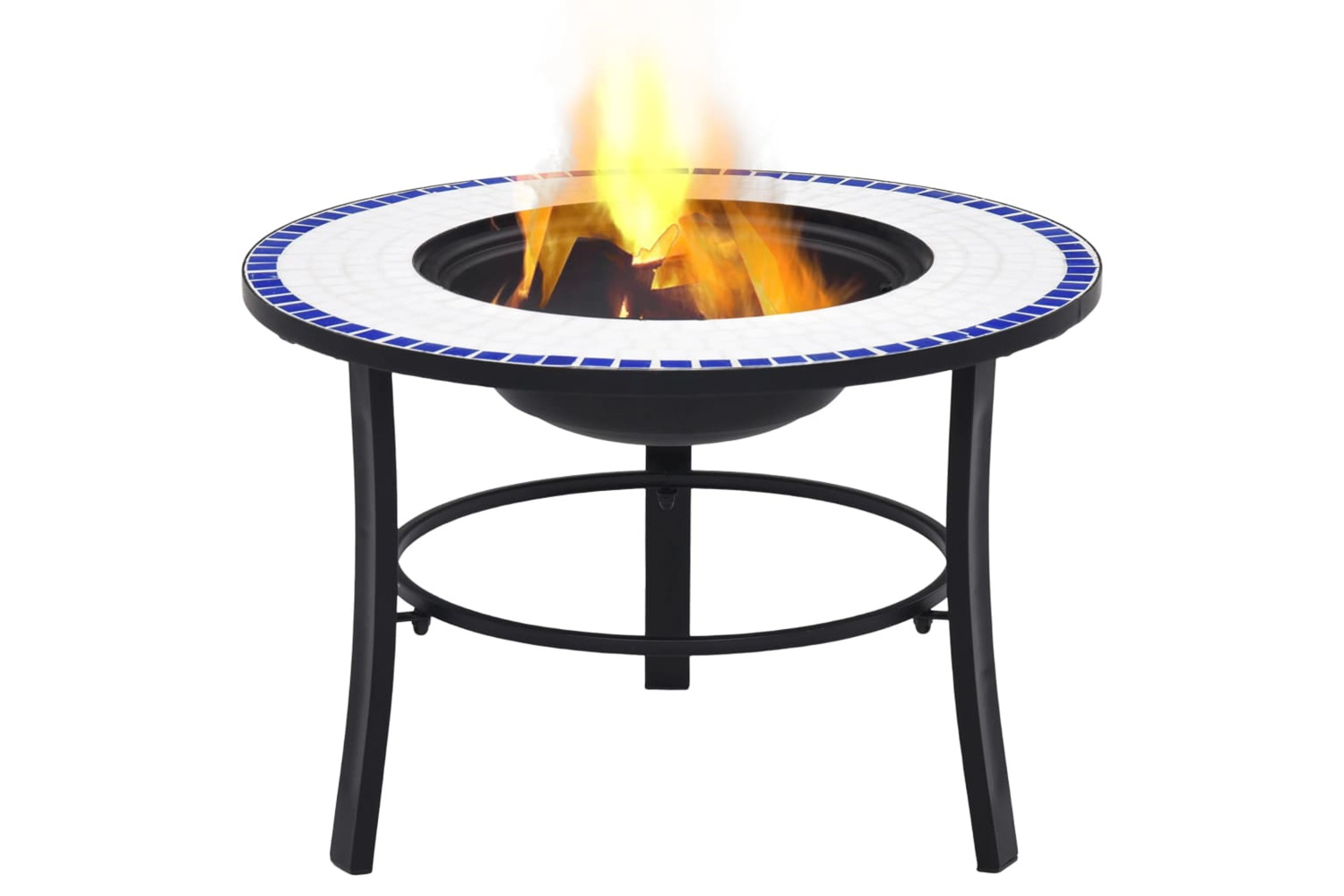 Made of high-quality steel, the fire pit bowl is excellent in absorbing and radiating heat. It can be used to burn dry wood, logs or charcoal. The fire pit is supported by a three-leg stand. The study design with grid make it also ideal for BBQ in the garden or on the patio. Additionally, it features a round tabletop around the center fire area, which provide a perfect place for placing drinks and roasting supplies. Please note this product is not suitable to be left outside in cold condition.