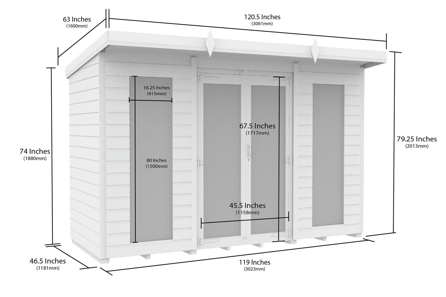 - Single sloping pent roof for efficient water drainage
