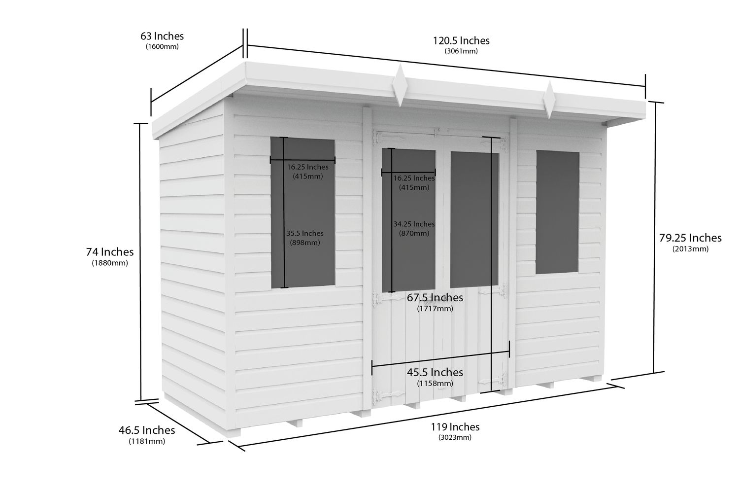 - Single sloping pent roof for efficient water drainage