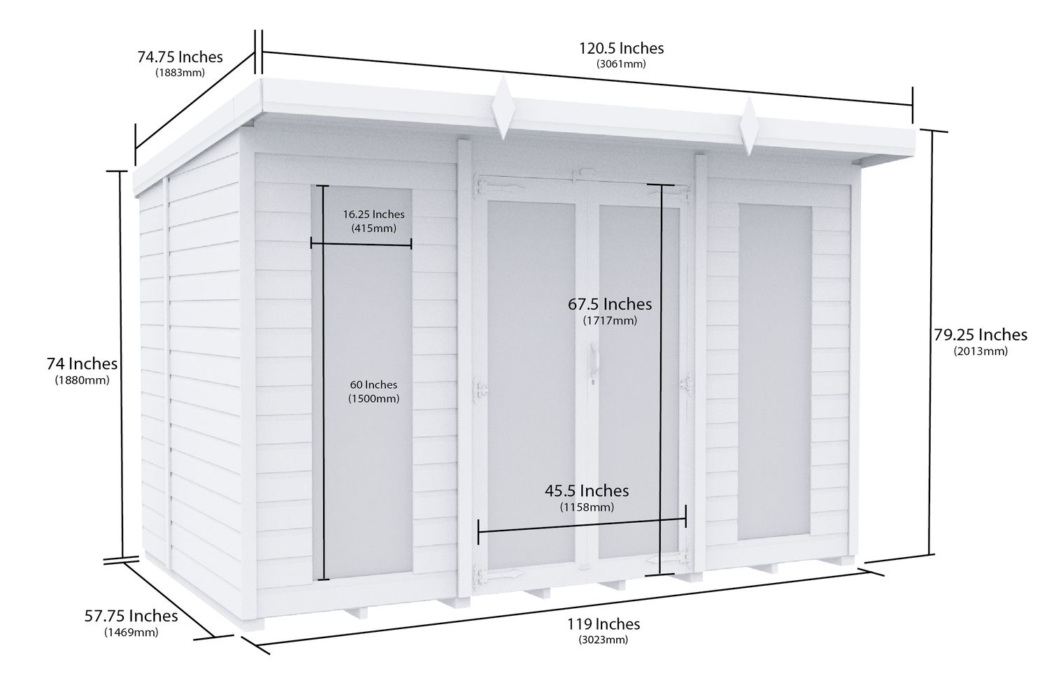 10 X 5 Pent Summer House | Full Height Window | Timber | 10ft x 5ft