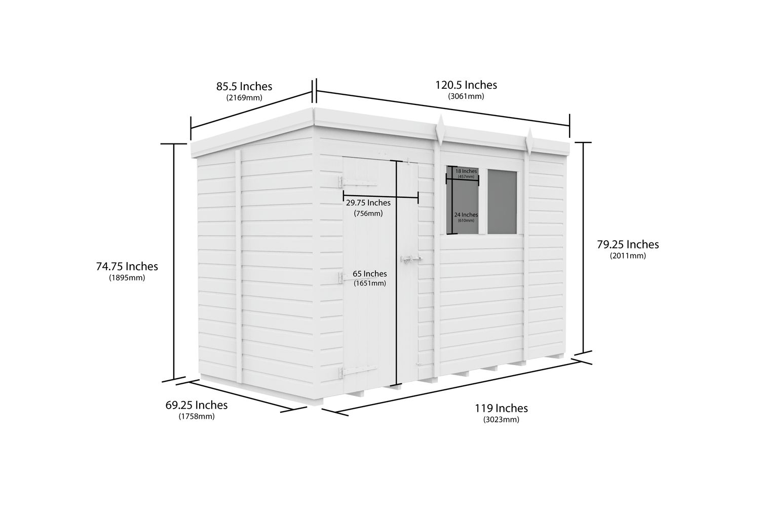 - Roof: Single sloping pent style
