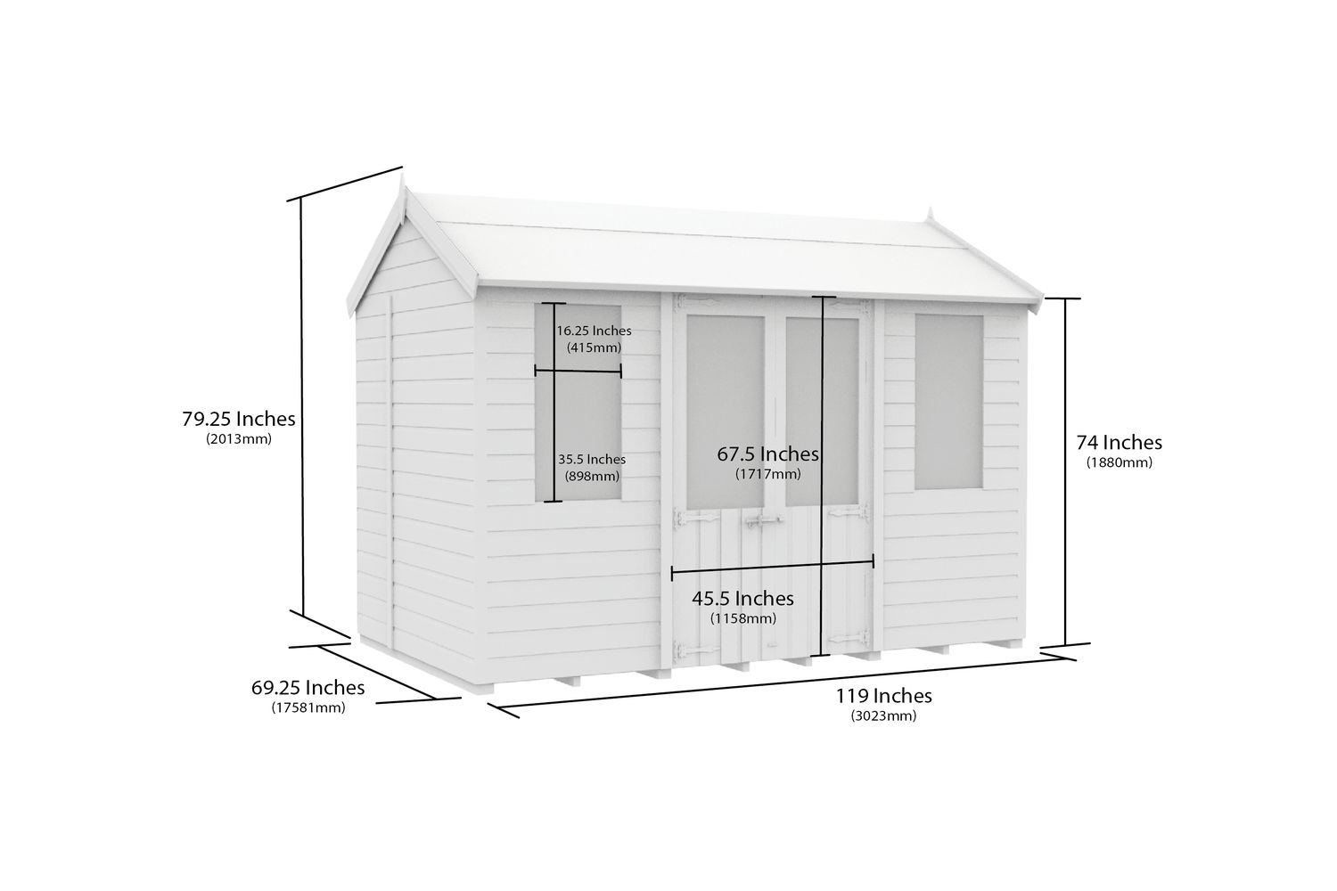 Enjoy flexibility with single or double door options and various window placements to maximise natural light and suit your garden layout. The fully framed and screwed-together design guarantees stability and long-lasting durability, while galvanised hinges and Brenton padbolts come as standard for added security. Optional extras, such as diamond leaded windows, allow you to personalise your summer house to match your style and needs.