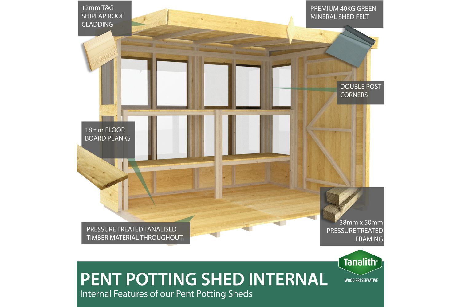 10 X 6 Pent Potting Shed | Garden Shed | Pressure Treated Timber | 10ft x 6ft