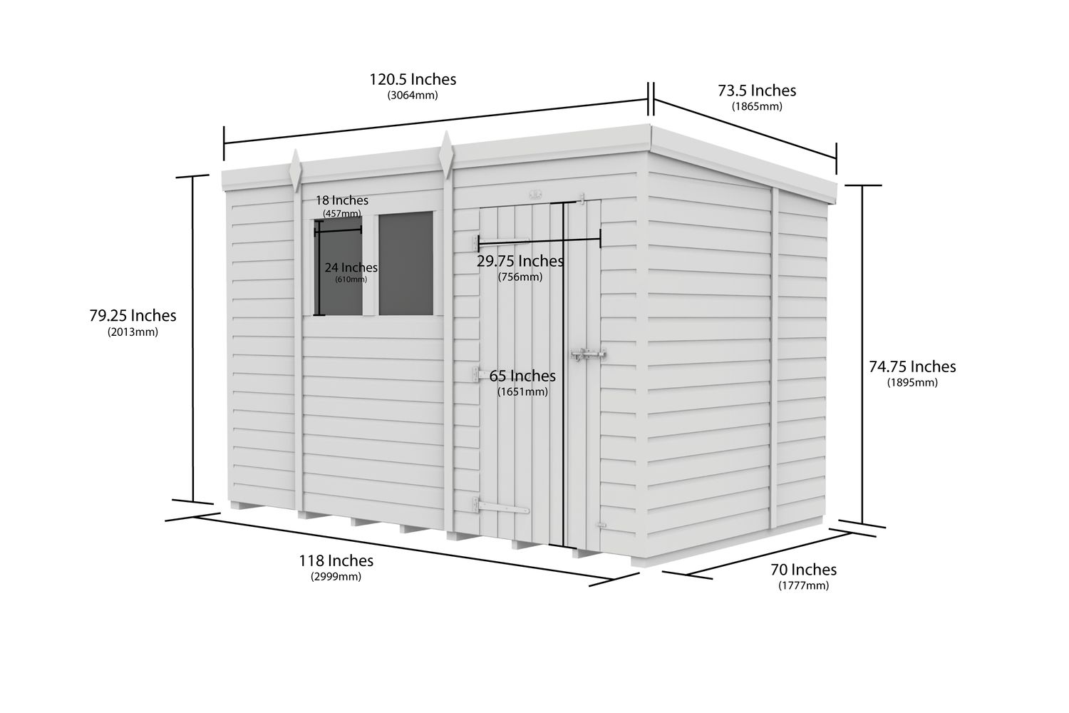- Roof: Single sloping pent design