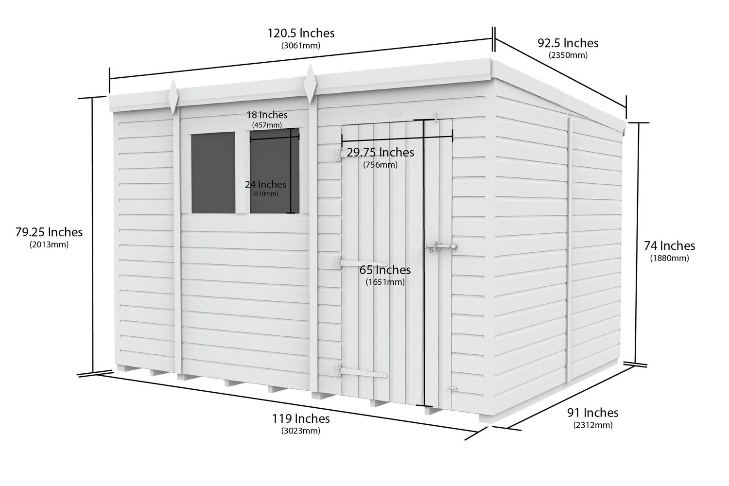 10 X 8 Security Pent Shed Double Door | Garden Shed | Pressure Treated Timber | 10ft x 8ft