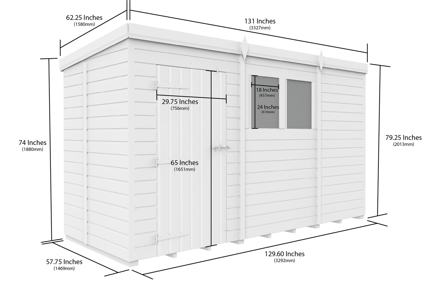 11 X 5 Pent Shed | Garden Shed | Tanalised Timber | 11ft x 5ft