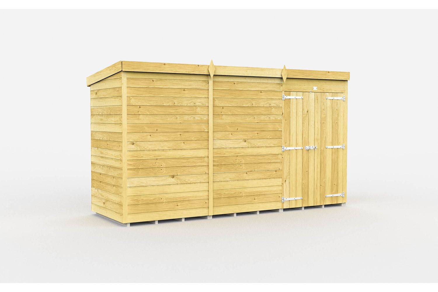 12 X 4 Pent Shed Double Door | Garden Shed | Tanalised Timber | 12ft x 4ft