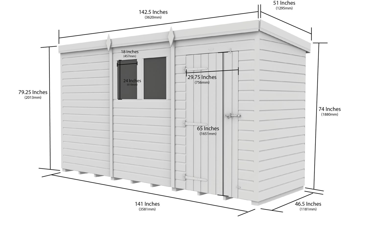 12 X 4 Pent Shed | Garden Shed | Tanalised Timber | 12ft x 4ft