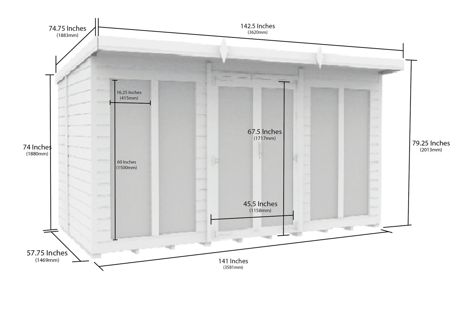 12 X 5 Pent Summer House | Full Height Window | Timber