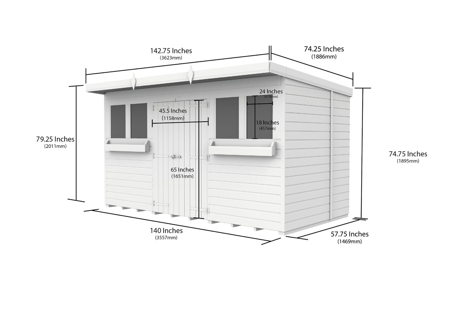 - Single sloping roof for efficient water drainage