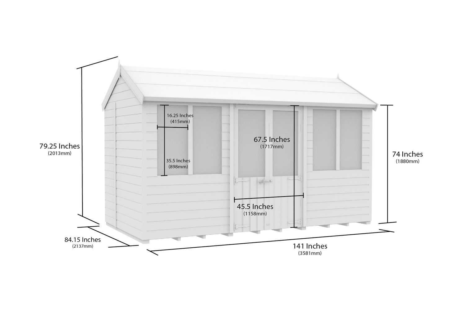 12 X 7 Apex Summer Shed | Garden Shed | Pressure Treated Timber | 12ft x 7ft