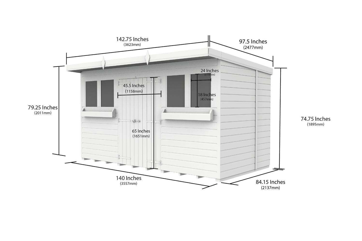 - Single sloping pent roof for efficient water drainage