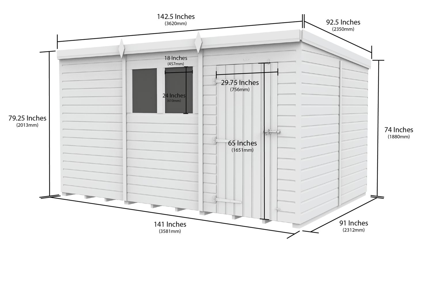 - Single sloping pent roof for efficient water drainage