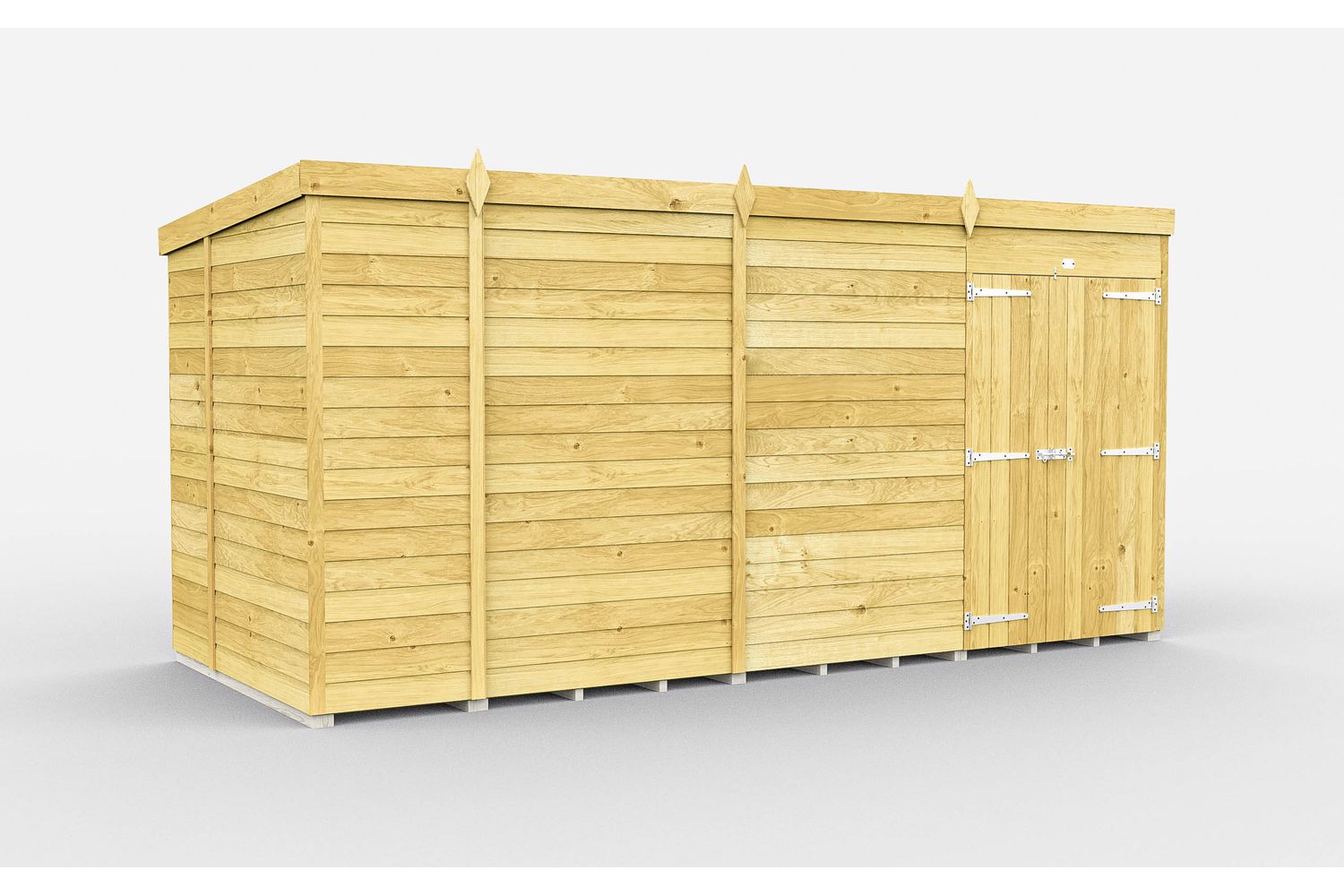 13 X 5 Pent Shed Double Door | Garden Shed | Tanalised Timber | 13ft x 5ft