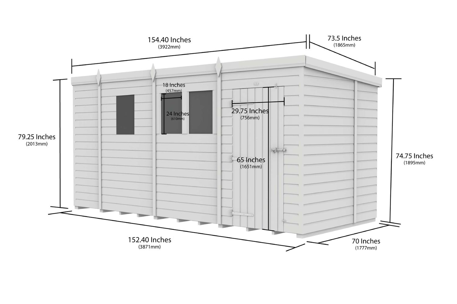 13 X 6 Security Pent Shed Double Door | Garden Shed | Tanalised Timber | 13ft x 6ft