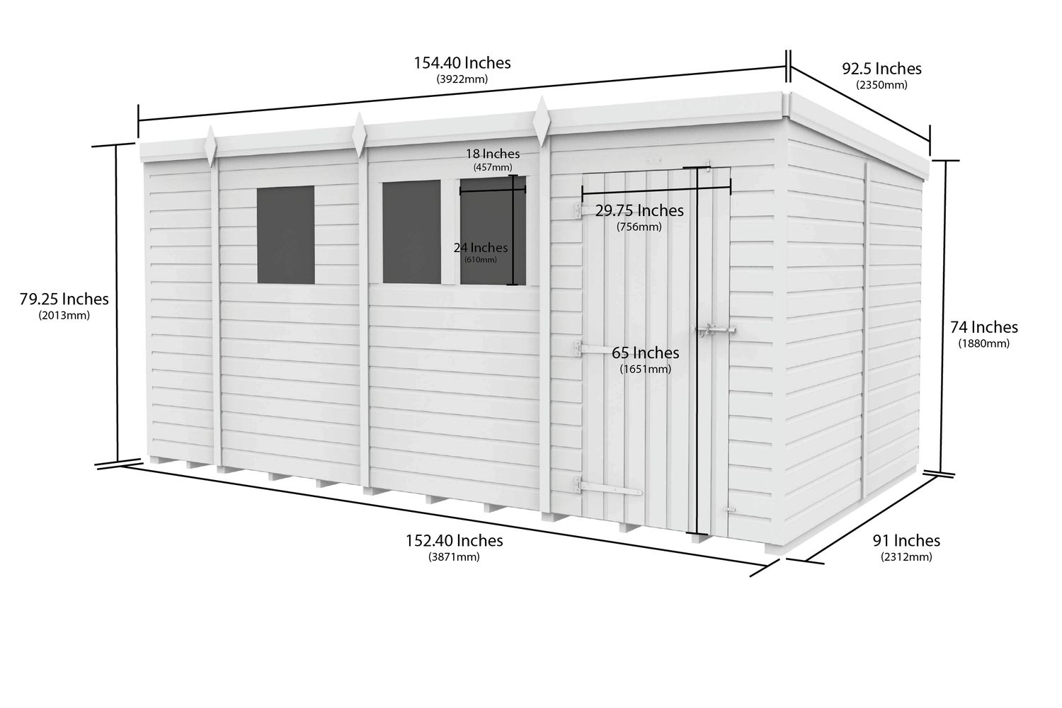 - Roof: Single sloping pent design