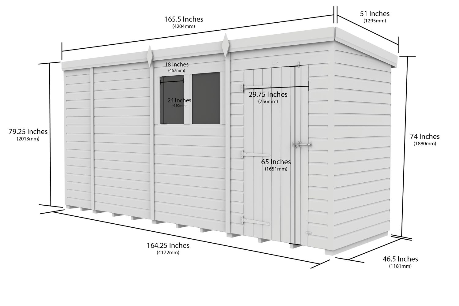 - Single sloping pent roof for efficient water drainage