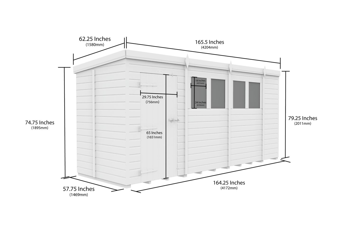 14 X 5 Pent Shed Double Door | Garden Shed | Pressure Treated Timber | 14ft x 5ft