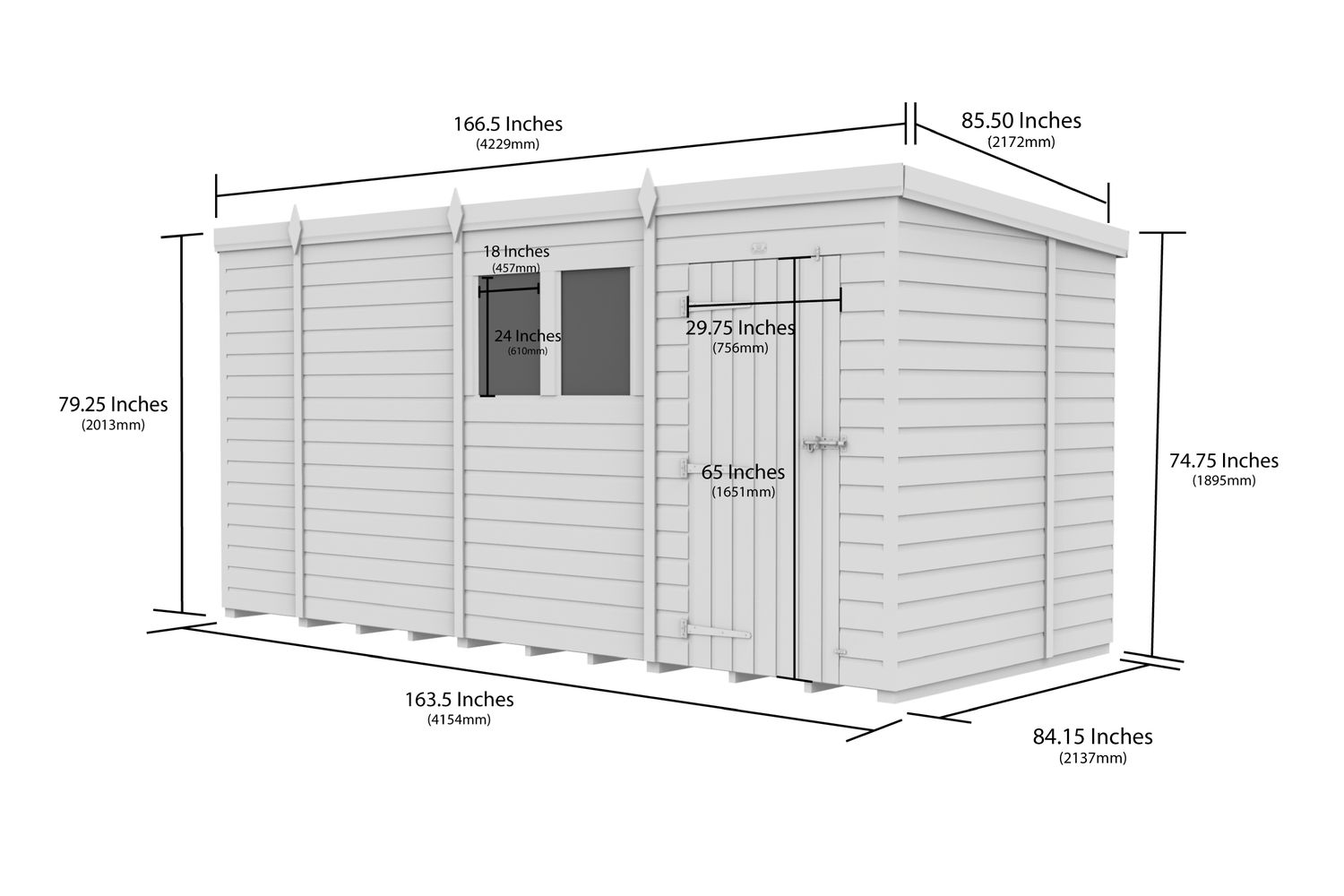 - Roof: Single sloping pent design