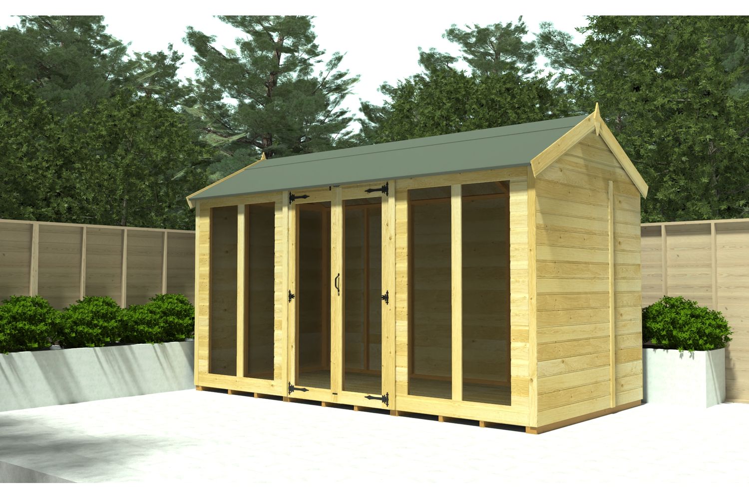 - 14 x 8 ft apex summer house with full height window for maximum natural light