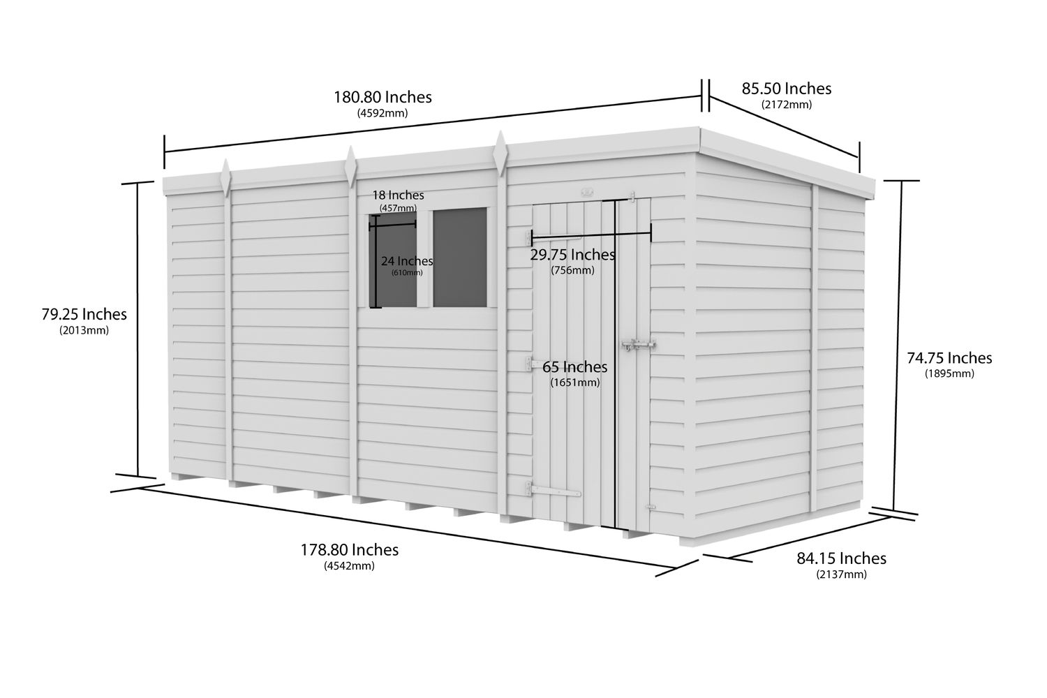 15 X 7 Pent Shed | Garden Shed | Pressure Treated Timber | 15ft x 7ft