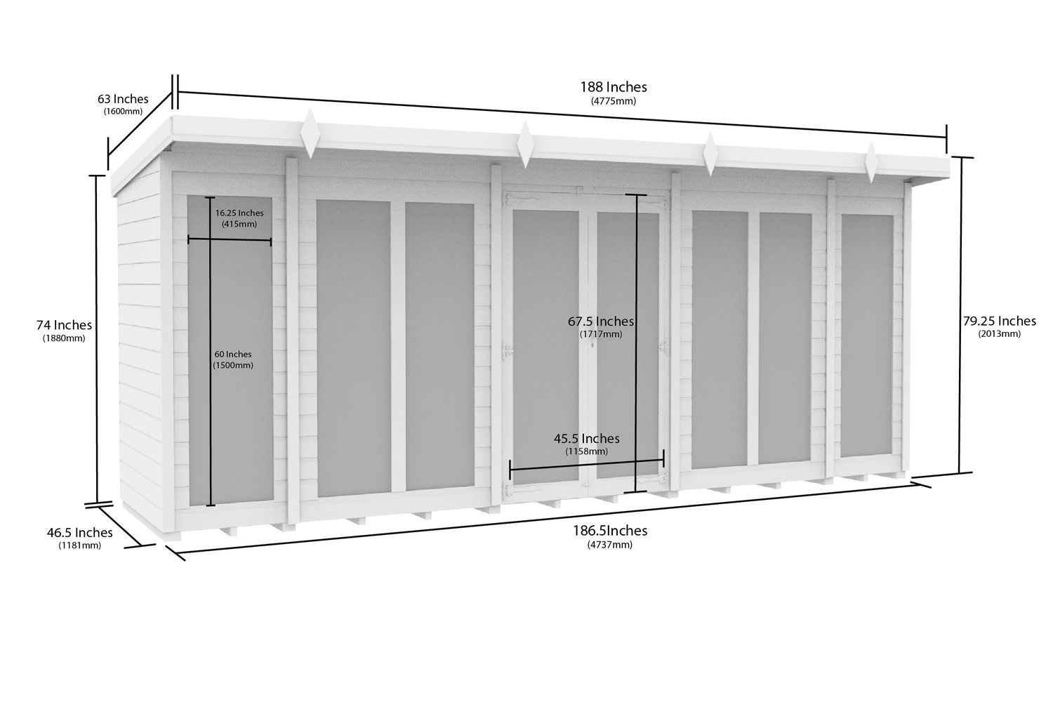 16 X 4 Pent Summer House | Full Height Window | Timber | 16ft x 4ft