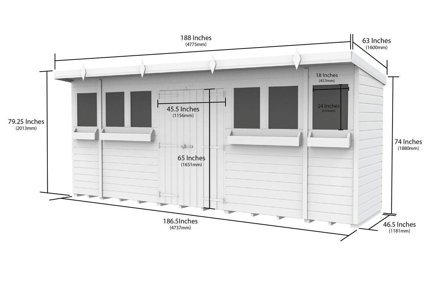 16 X 4 Pent Summer Shed | Garden Shed | Tanalised Timber | 16ft x 4ft