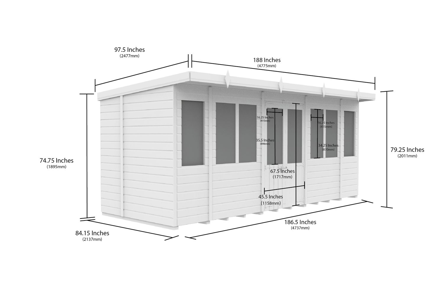 - Modern pent roof with higher front for extra headroom and efficient water drainage