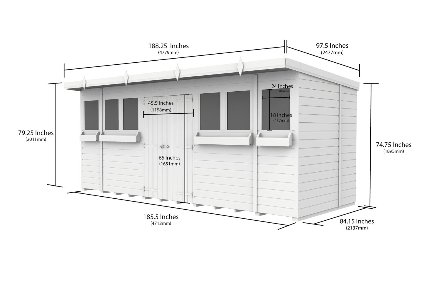 - Single sloping roof for efficient water drainage