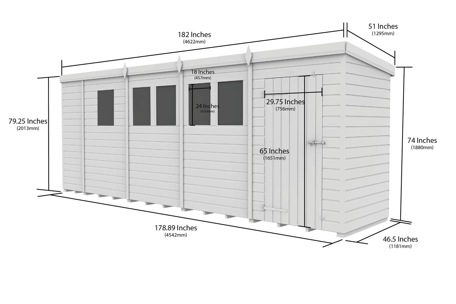 - 17ft x 4ft pent shed, perfect for narrow spaces