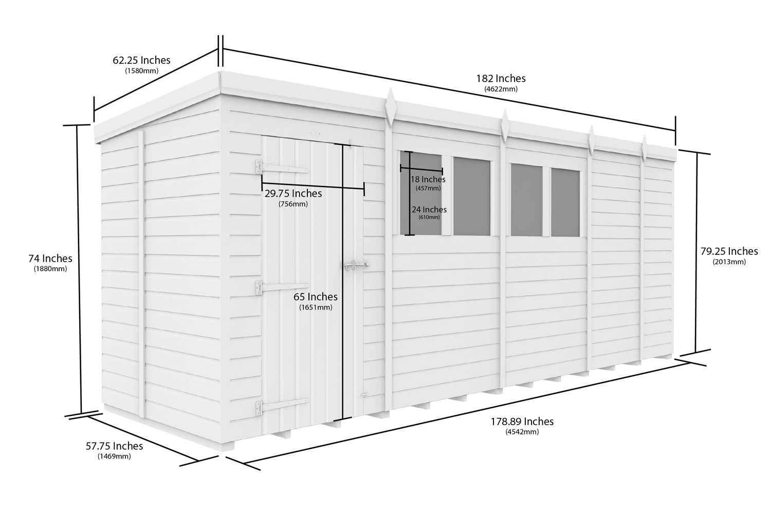 17 X 5 Pent Shed Double Door | Garden Shed | Tanalised Timber | 17ft x 5ft