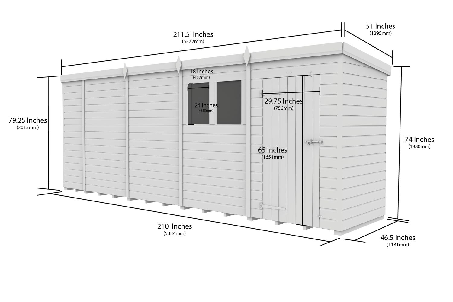 18 X 4 Pent Shed | Garden Shed | Pressure Treated Timber | 18ft x 4ft