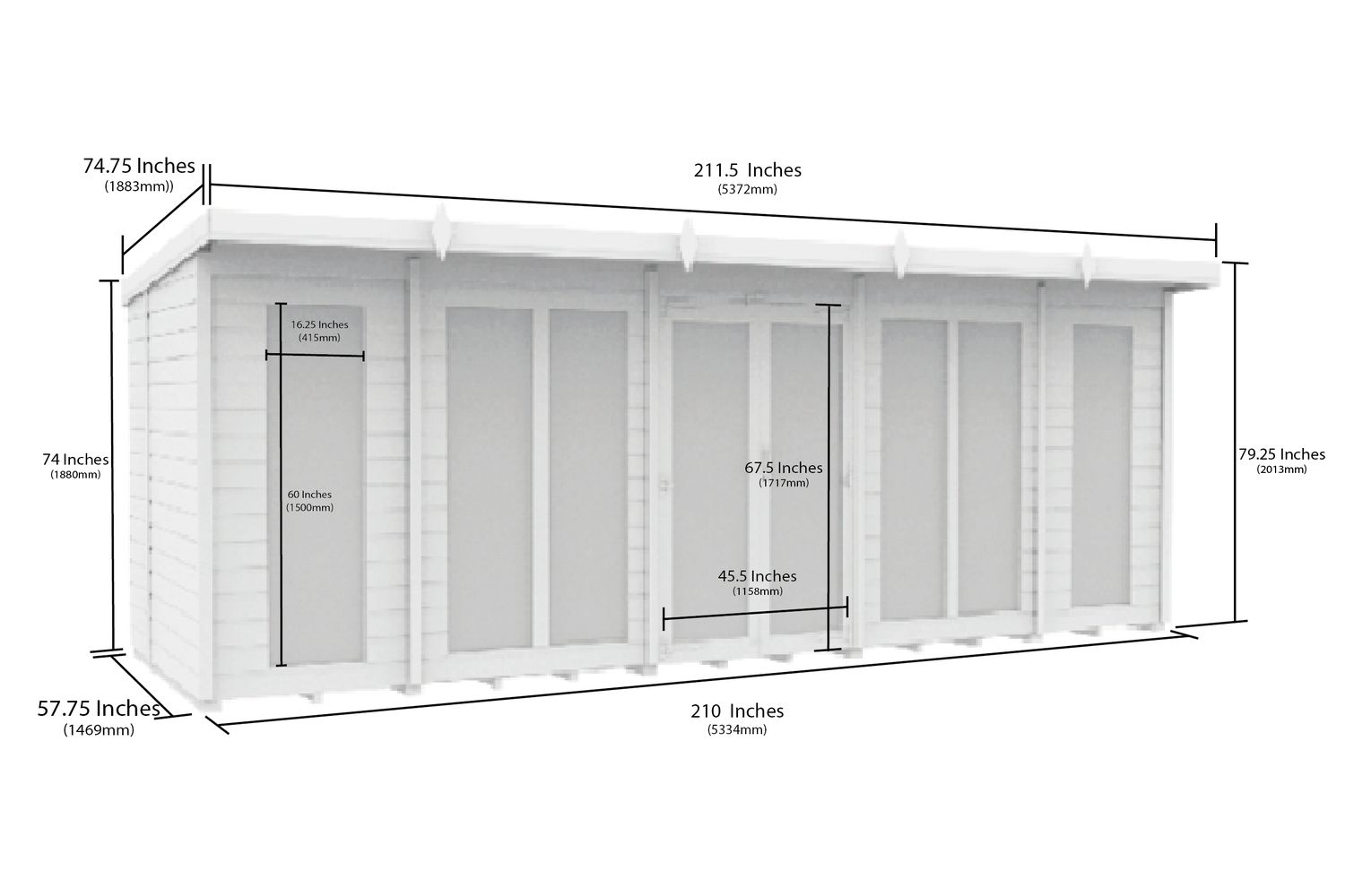 18 X 5 Pent Summer House | Full Height Window | Timber