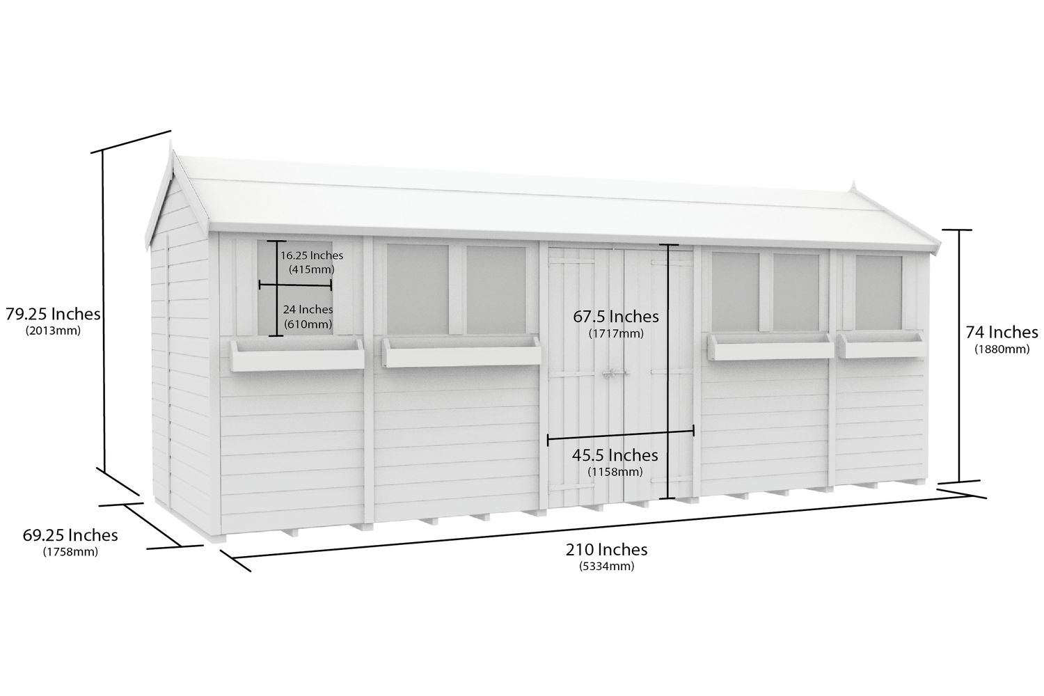 - 18ft x 6ft apex roof design for maximum headroom and storage