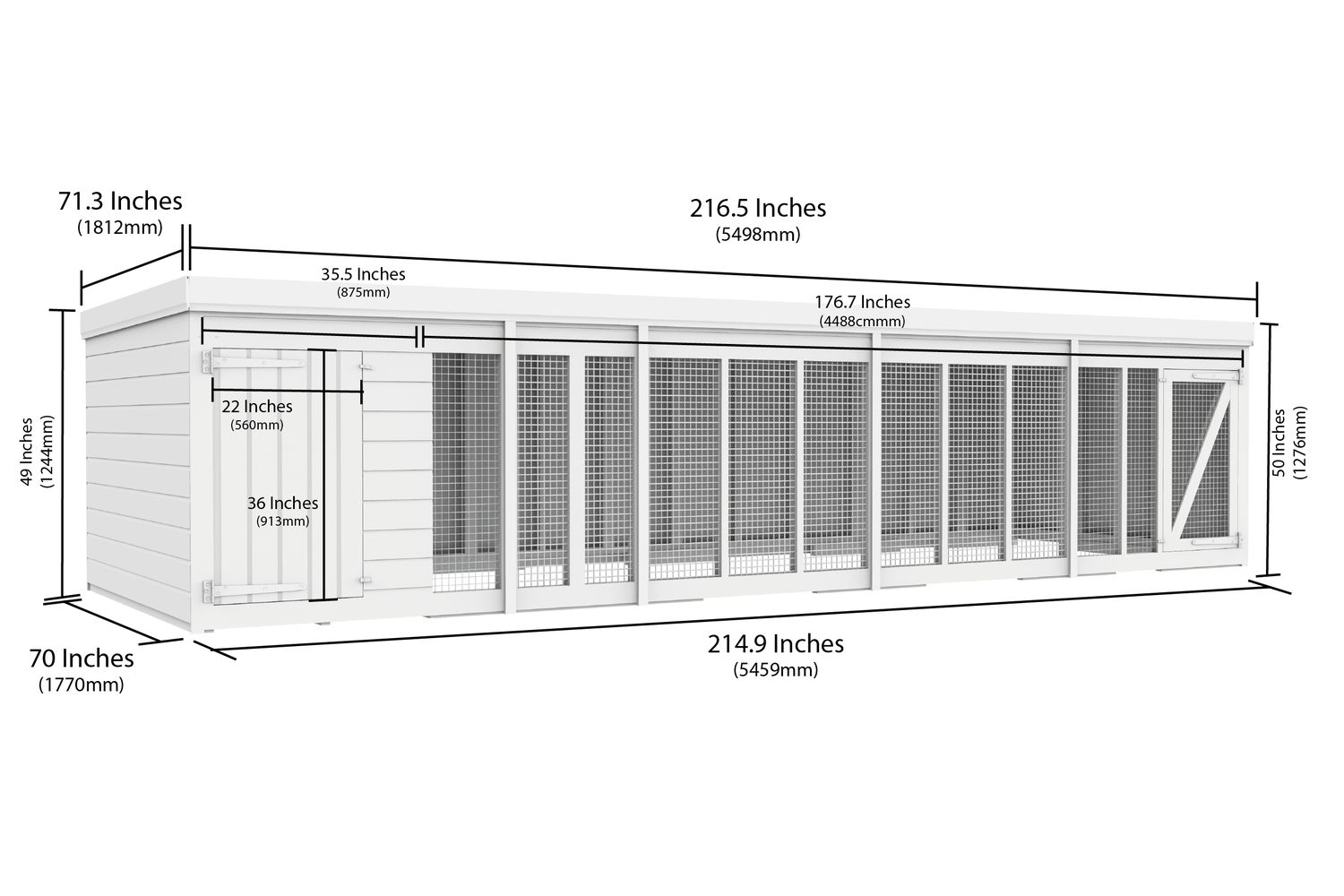 - Floor: 18mm pressure treated planks (kennel area only)
