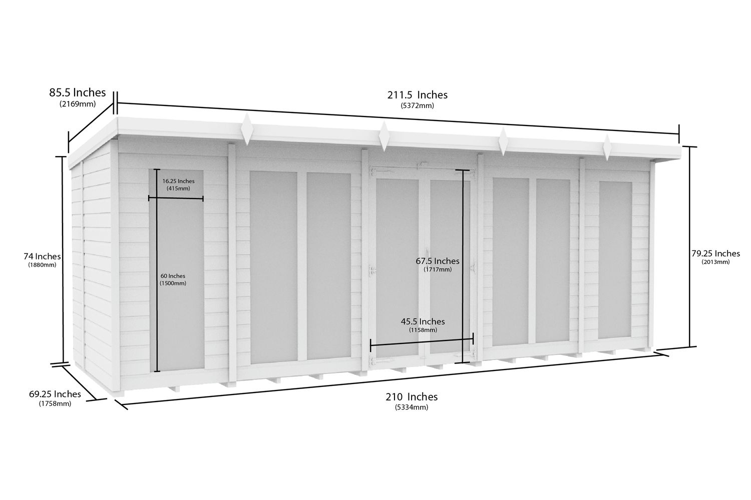 18 X 6 Pent Summer House | Full Height Window | Tanalised Timber