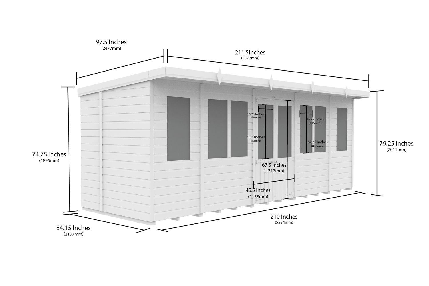 - Single sloping pent roof for efficient water drainage