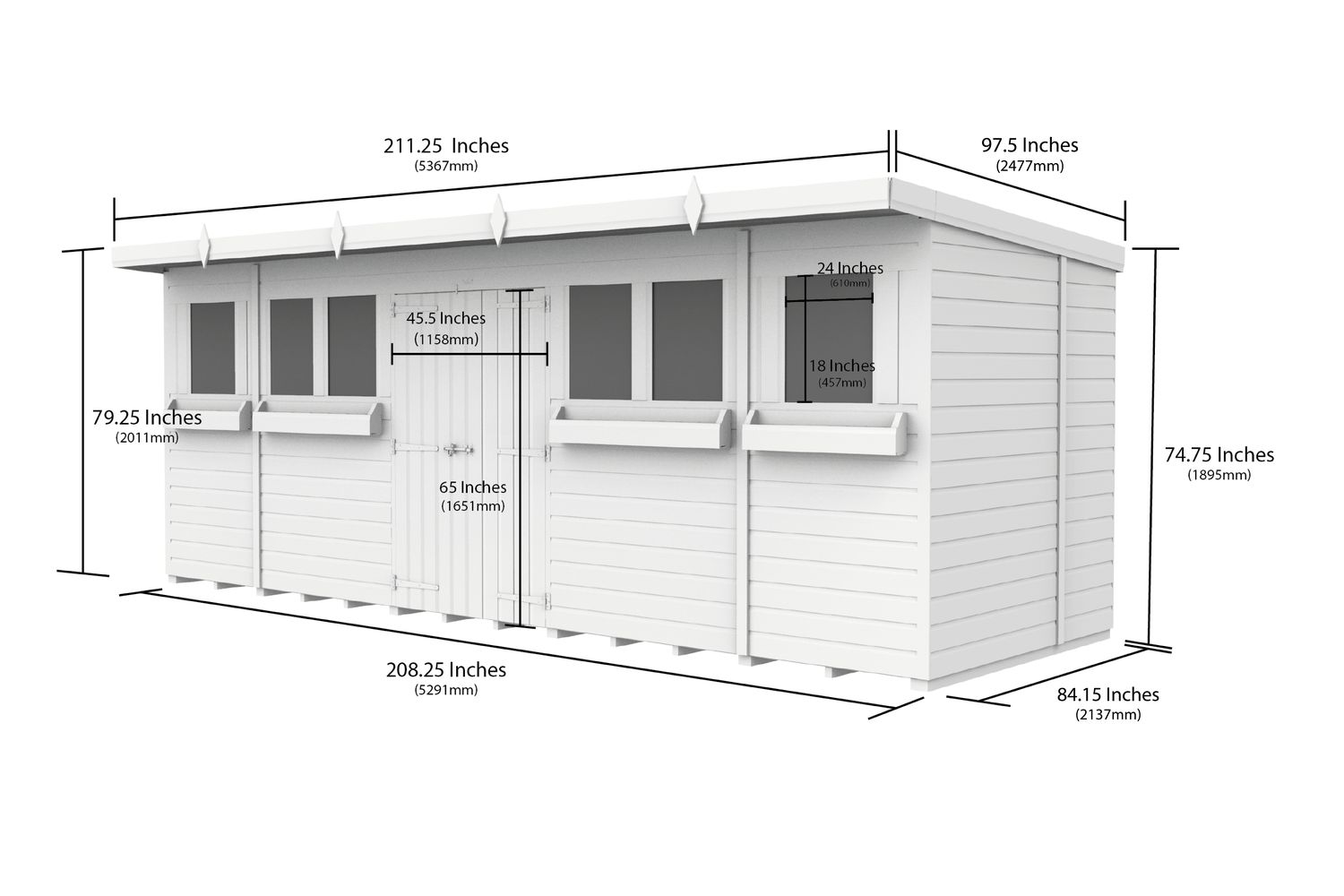 18 X 7 Summer Pent Shed | Garden Shed | Pressure Treated Timber | 18ft x 7ft