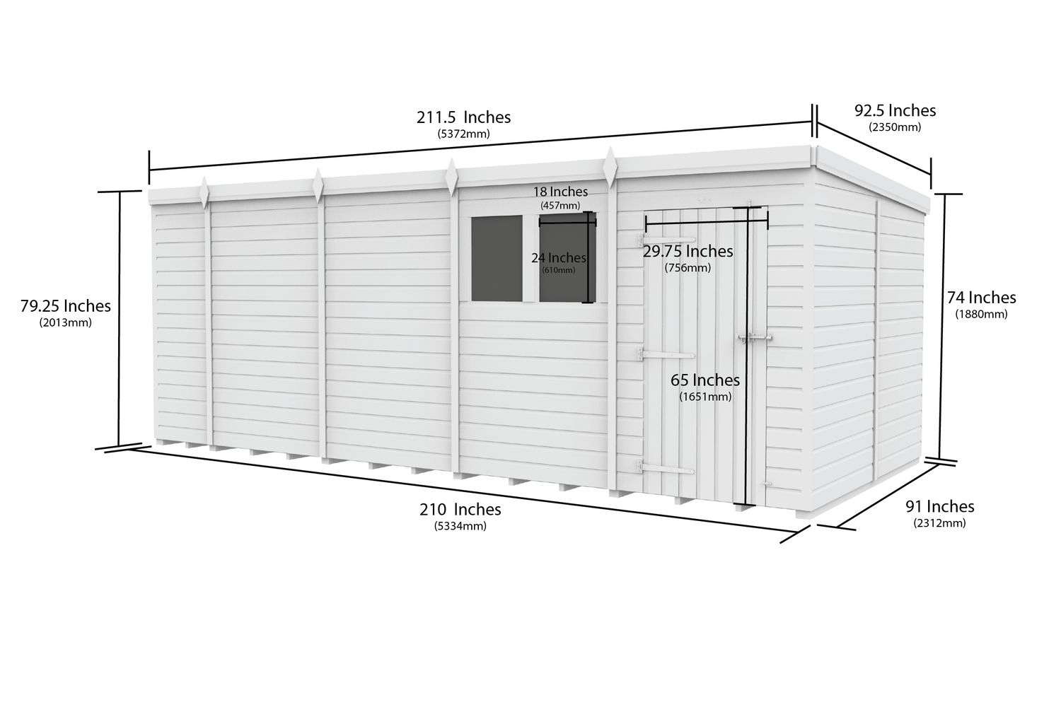 - 18 x 8 Pent Shed Double Door (pre-engineered panels)