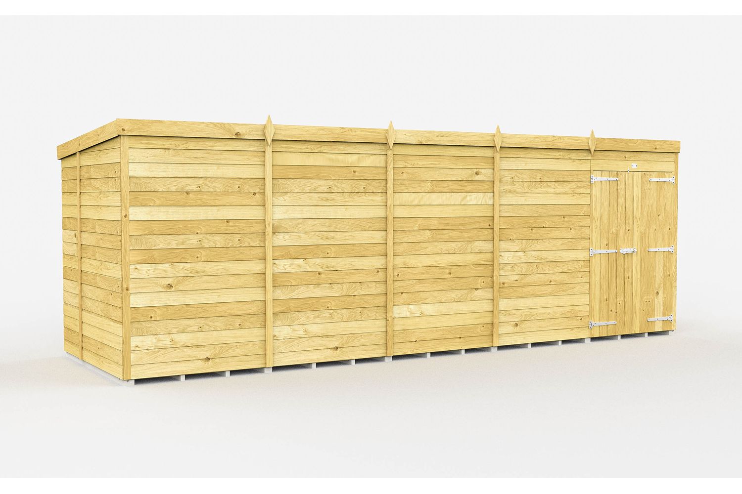 19 X 5 Pent Shed Double Door | Garden Shed | Tanalised Timber | 19ft x 5ft