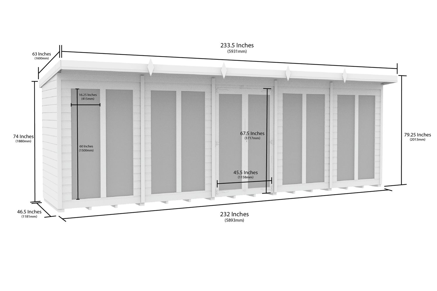 20 X 4 Pent Summer House | Full Height Window | Timber | 20ft x 4ft