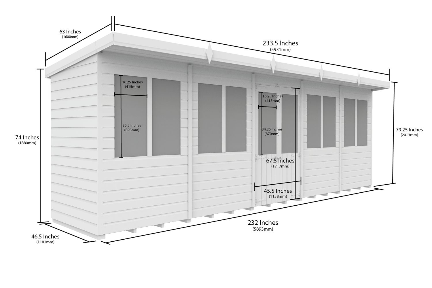 20 X 4 Pent Summer House | Summer House | Tanalised Timber | 20ft x 4ft