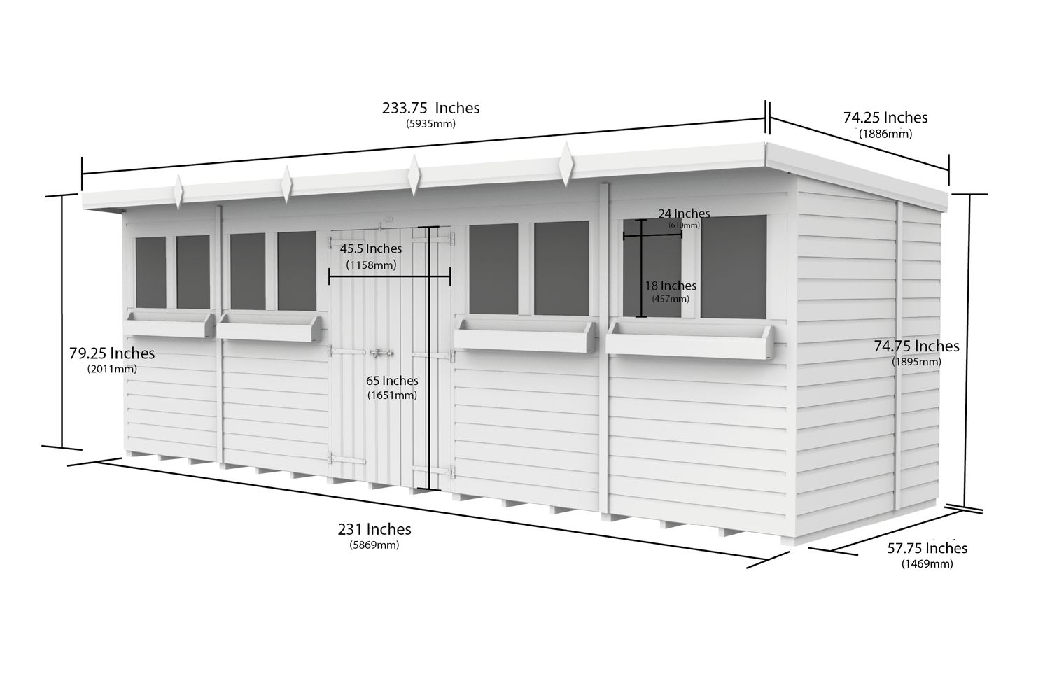 20 X 5 Pent Summer Shed | Garden Shed | Pressure Treated Timber | 20ft x 5ft